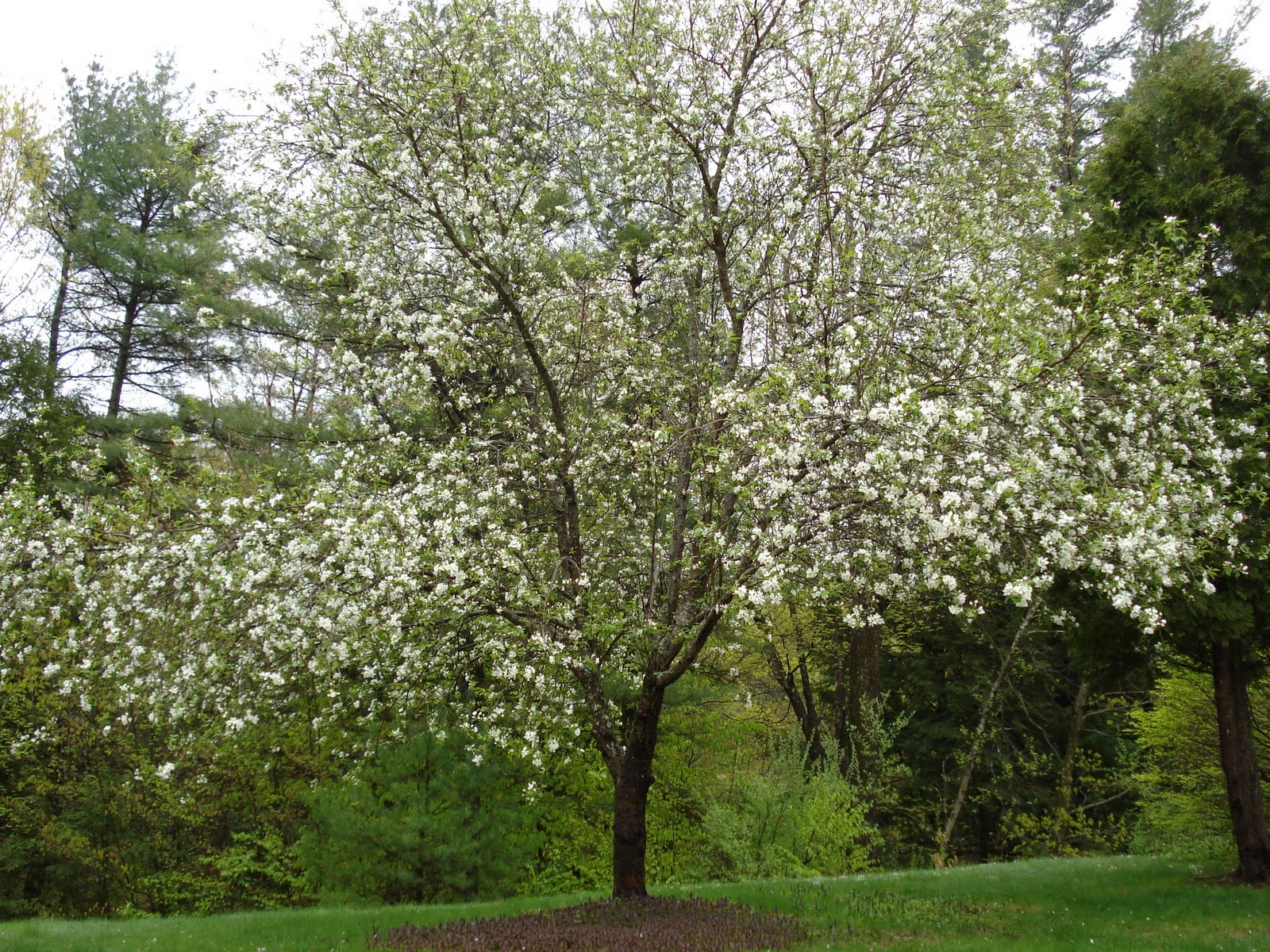 Driving to the lake house there is a hill that, once crested, reveals an apple orchard on the left. Just now, every tree in the orchard is in white bloom, perfumed with blossoms calling to the bees. Often the storms accompanying the month of May blow all the apple petals to the ground like a blizzard and the impressive, but elusive moment, passes without witness. This year our breath-holding has kept all the blossoms intact.